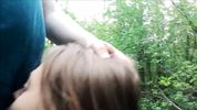 Молоденькая минетчица жадно сосет член мужика в лесу, желая получить сперму