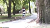 Тёлка зашла в мужской туалет, и была там крепко выебана в рот, обоссана и принуждена лизать очко