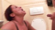 Бабища зашла в туалет и была брутально выебана молодым хуйцом прямо в ротик