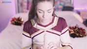 Молоденькая чирлидерша соскучилась по сочным хуям и усиленно сосёт искусственный член
