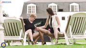Описание:Зрелая мадам поливала цветочки и думала о сочных девичьих письках, как вдруг на глаза ей попалась её молодая соседочка. Девушка попросила помочь ей достать из глаза соринку и дамочка очень охотно пришла ей на помощь. Всё бы ничего, вот только они так хорошо подружились, что стали показывать друг дружке фасоны бельишка и молодая потрогала крупные груди своей старшей подруги. А потом и показала свои – маленькие и аккуратные. На этом их дружба перешла в более тесный контакт и разгорячённые бабы отлично развлеклись голышом на лужайке, не боясь ни комаров, ни нескромных и похотливых соседей.