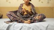 Вместо того, чтобы съесть - запихала банан себе в письку, так тёлке хотелось ебаться