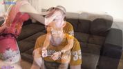Описание:Училка думала, что от универа её преследует сексуальный маньяк и поэтому обильно опрыскала его глаза из балончика. На её беду это оказался её же студент, который начал наглеть и сказал, что этот инцидент он так не оставит. Просто пятёрка по химии его не устроила, поэтому находчивая училка предложила студенту минет за молчание. Пацан охуел от такой неожиданной радости, а бабёнка крепко взялась губками за его ученический хуй, а потом в качестве бонуса даже впустила его поебаться в свою шлюшью пиздищу.