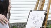 Описание:... и там отъелдонил красотку! Дед - учитель изобразительного искусства. К нему ходят молодые художницы, чтобы учиться, а он их всех похотливо хватает и лапает, заполучая от этого стояк своего старого хрена. Сегодня в лесочке он учил рисованию такую красуню, что не ограничился просто облапыванием её нежных прелестей. Молодая брюнеточка тоже была вовсе не против наградить старого дедушку телом, так что позволила ему отвести себя в лесочек поглубже, где и обслужила раздухарившегося дедулю по полной программе.