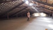 Похотливый сержант связал сисястую девку-солдата, чтобы потом без помех отпороть её на чердаке их казармы